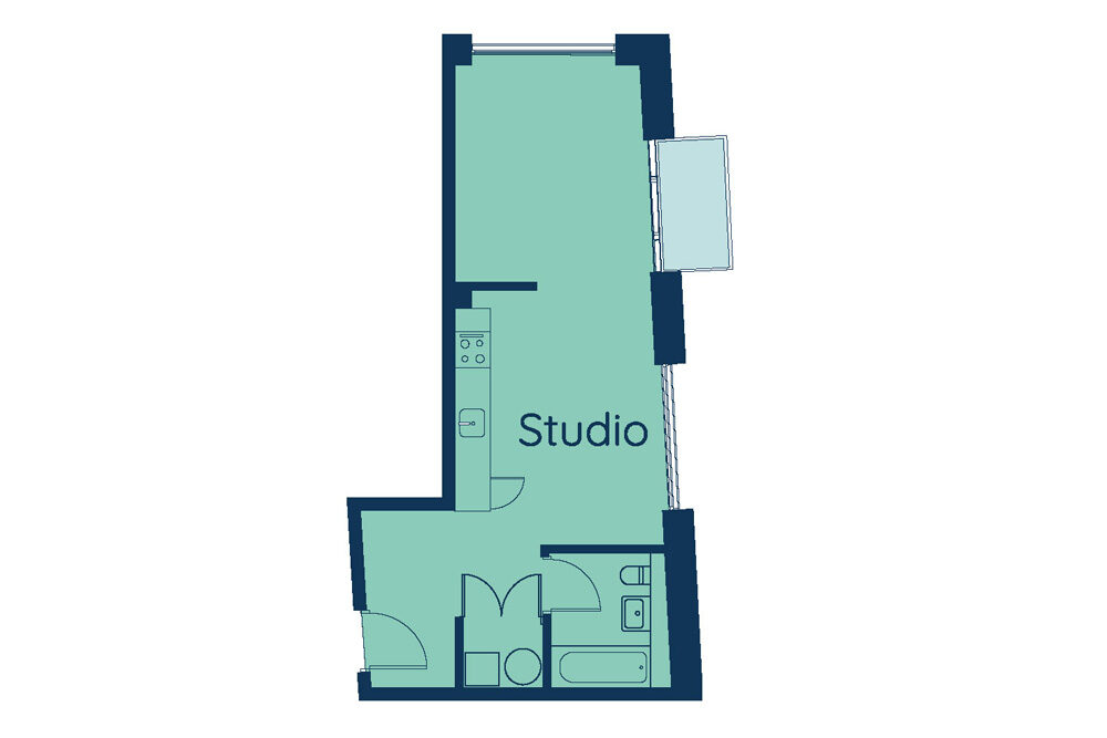 With city style proportions with sleek, cleverly designed, homely space, this studio is the perfect starter home, or bolthole, with a comfortable living and bedroom area. The finish and fittings of the kitchen and bathroom are to the same high standard as the larger apartments.